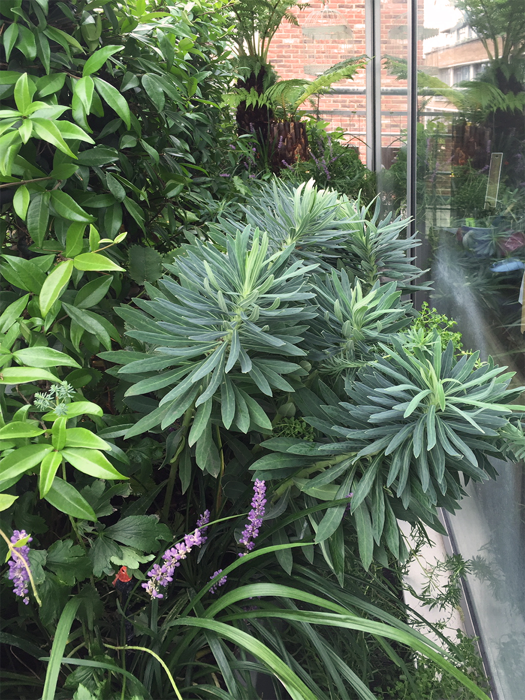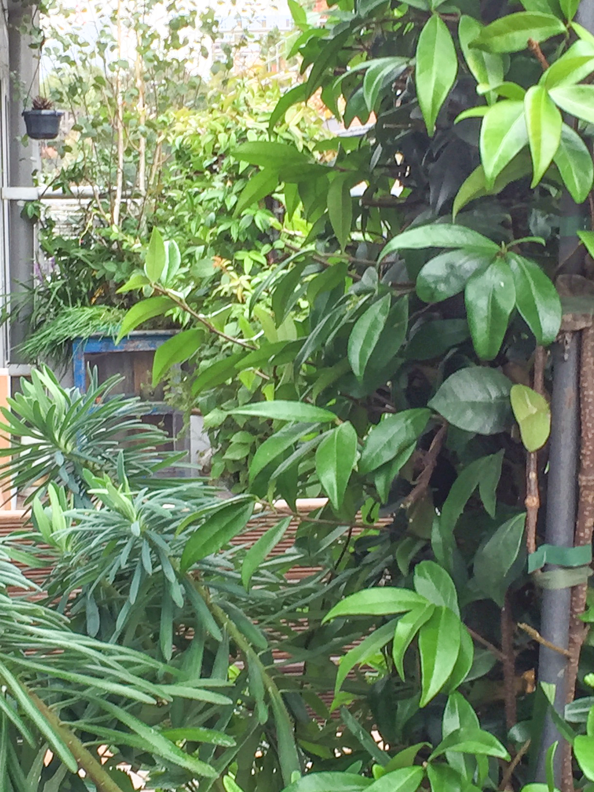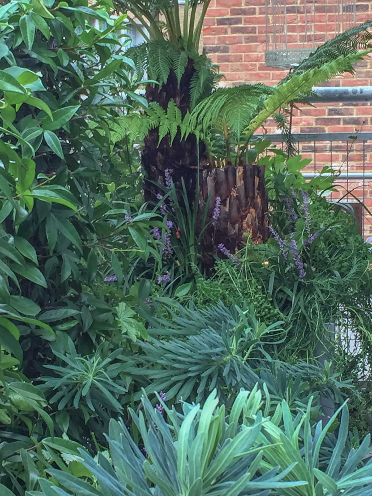 Packed into 800mm width of space (2 1/2 ft old money) are Betula trees, Tree Ferns, Euphorbias and Liriope. Lush and jungly, an oasis escape in the City.