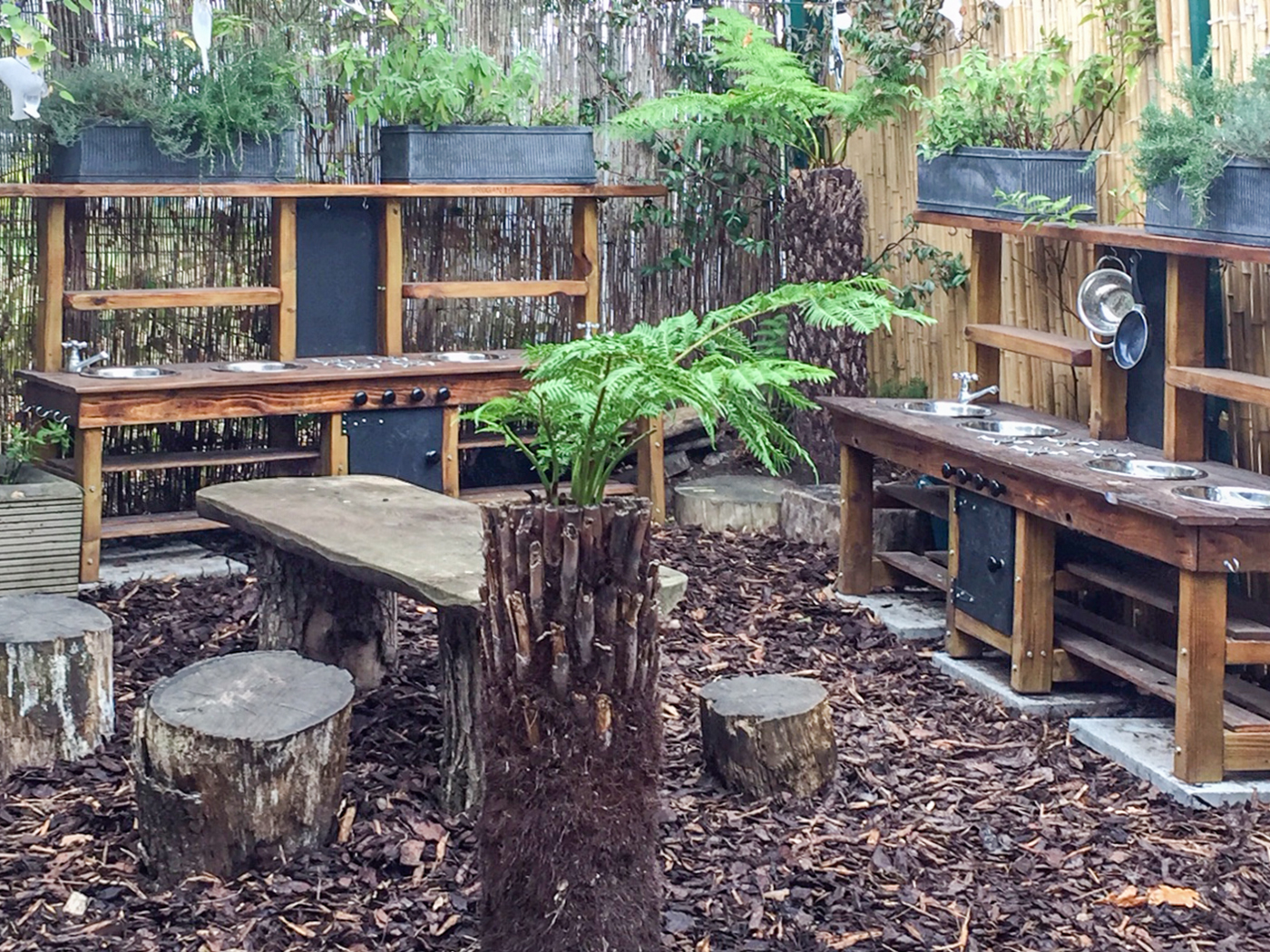 The garden is home to salvaged timber play kitchens, aromatic herb planting and architectural natural willow pods. From outdoor speakers the sound of bird song and the sea can be heard as an antidote to city noise.
